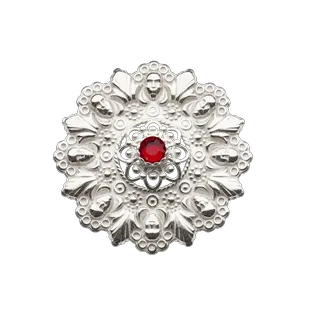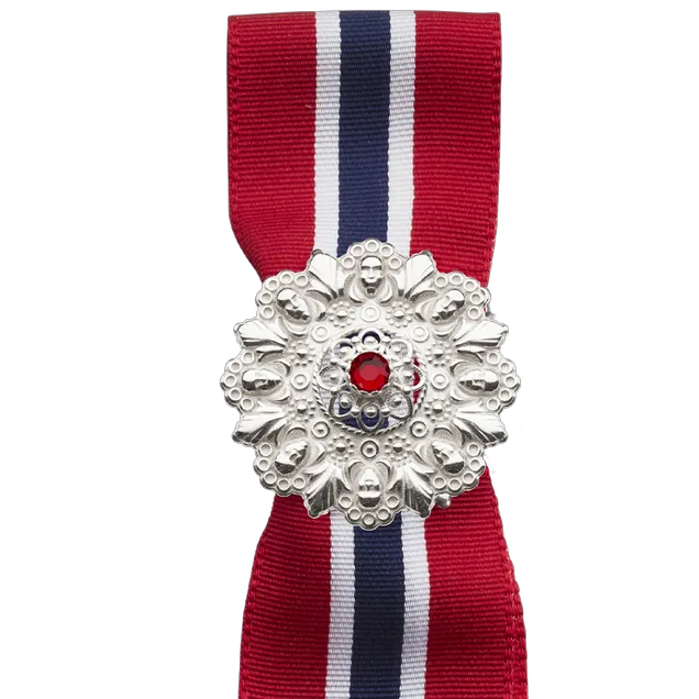17.mai-sløyfepin 2-i-1 med raud stein, kvit