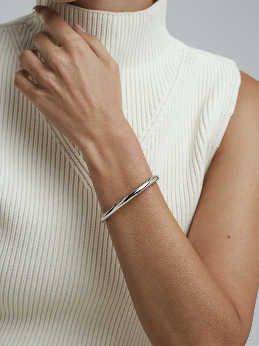 Aura Bold Silver Bangle deler den samme elegante og sofistikerte designen, men med en moderne sølvfinish.