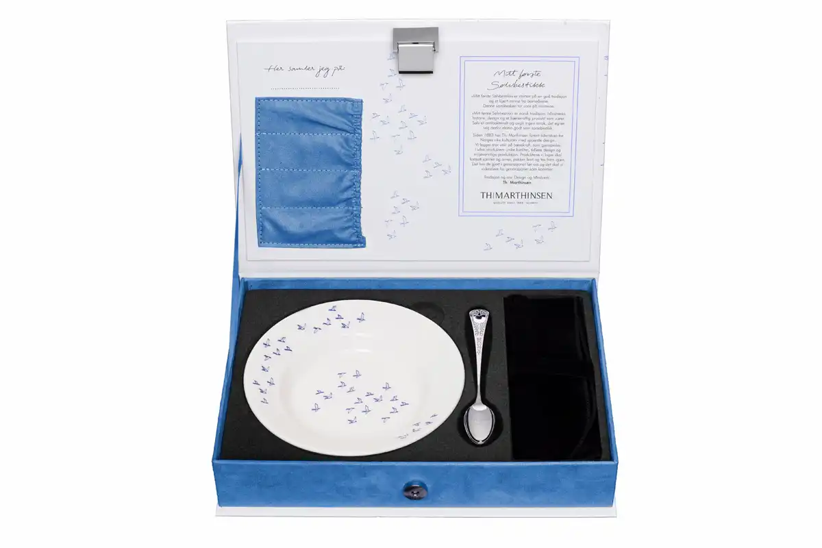 «Min dåpsskje» gravert i skjebladet på barneskjeen.
