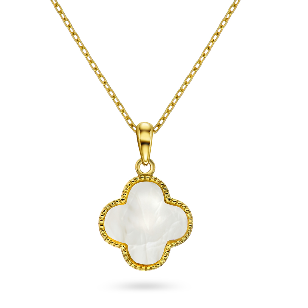 Kløver smykke i 925 forgylt sølv med større kløver i perlemor